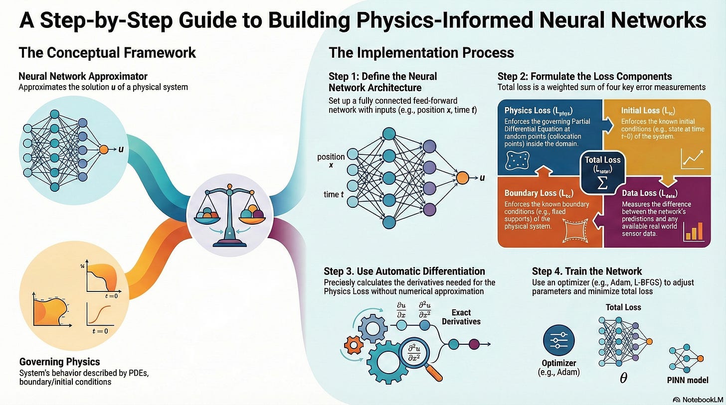 The solution is the “Hybrid Brain,” specifically through Physics-Informed Neural Networks (PINNs). By constraining AI learning with established physical laws (such as the Navier-Stokes equations for fluid flow), we create a system that remains grounded in reality even when data is sparse. (Yan et al., 2024)